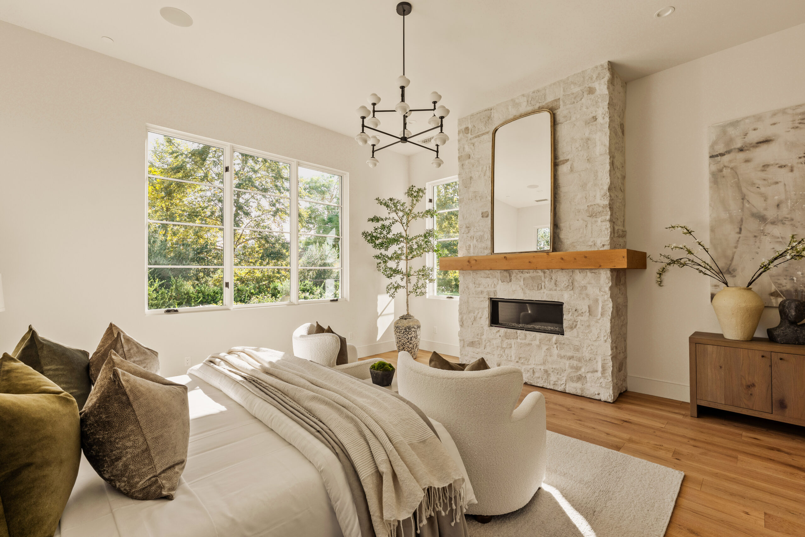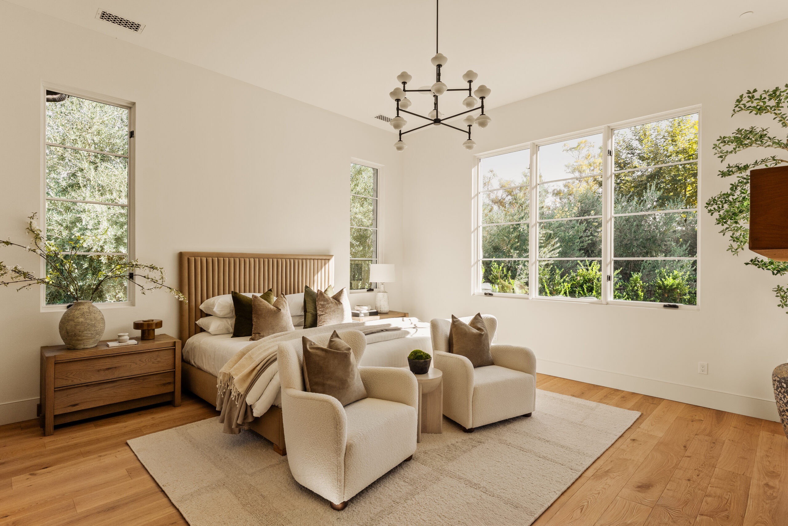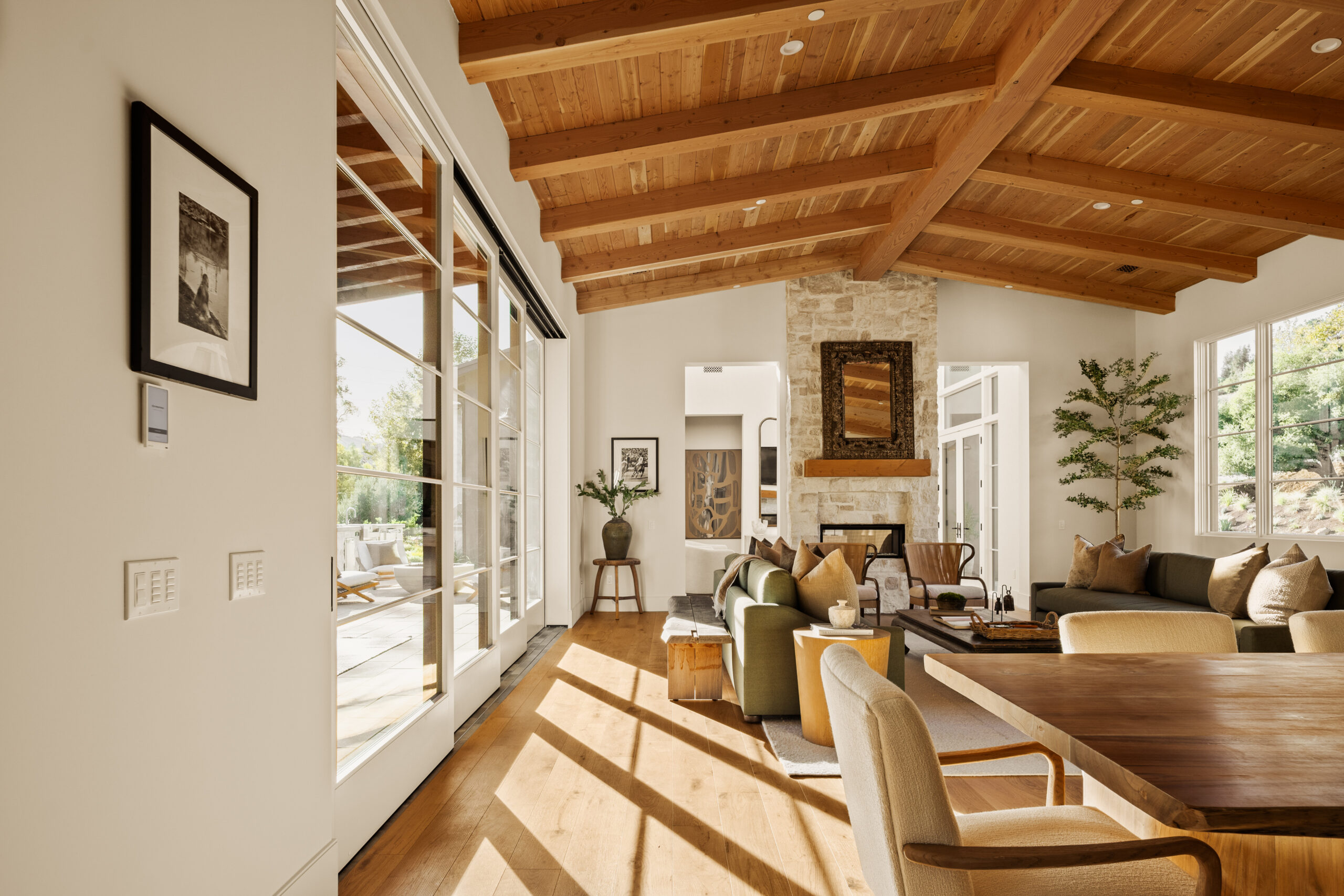 Tucked beyond a long, private drive within the exclusive gates of Malibu Valley Estates, this newly completed Modern Ranch estate reimagines California countryside living with a warm and contemporary refinement. Framed by the rolling hills of the Santa Monica Mountains, the residence is the latest work by one of Southern California’s most meticulous luxury builders, showcasing an elevated palette of natural stone, light wood, and bespoke finishes that celebrate texture, scale, and serenity. Set on approximately 1.7 acres behind its own secondary gates, the 6,000+ SF single-story compound spans 12-26 ft ceilings and is thoughtfully composed of a Main Residence, Junior ADU, and full Guest House, ideal for multi-generational living, long-term guests, or dedicated office/studio spaces with complete privacy. Designed to embrace an authentic indoor/outdoor flow, the interiors feature artisanal craftsmanship displayed through expansive stone accents, wide-plank engineered hardwood, custom millwork, solid-core doors, and floor-to-ceiling walls of glass that blur the line between home and nature. At the heart of the residence is a dramatic great room and an impeccably curated chef’s kitchen outfitted with Gaggenau and Thermador professional appliances, an oversized eat-in island, marble countertops, and a walk-in pantry designed for both intimate living and grand-scale entertaining. The primary suite is its own sanctuary, offering 12-foot ceilings, a fireplace, a spa-inspired bathroom with dual vanities, a soaking tub, and a generous shower wrapped in stone. Outdoor living unfolds across multiple destinations, covered patios, an expansive poolside terrace with a full outdoor kitchen and pool bath, a romantic fire-pit lounge, and spacious lawns surrounded by mature landscaping. A lower portion of the lot provides the rare possibility to accommodate recreational amenities just moments from nearby riding trails and a renowned hunter/jumper center. A striking and secluded retreat only a short drive to Pacific Coast Highway, US-101, Erewhon, Old Town Calabasas, and the region’s best hiking and biking, this estate offers a rare opportunity to experience handcrafted luxury, nature, and privacy without compromising proximity. A true legacy property, timeless, refined, and thoughtfully built for those who value exceptional living..